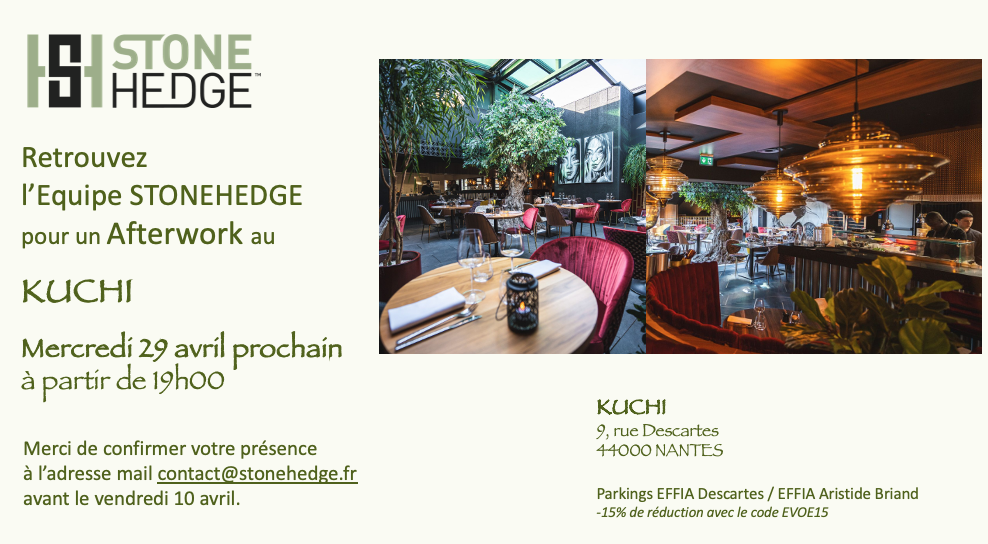AFTERWORK STONEHEDGE – SAVE THE DATE – Mercredi 29 Avril 2026 – Le KUCHI (Nantes)